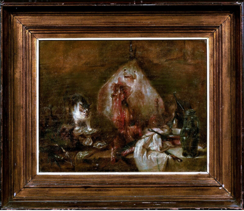 18th Century French Old Master Still Life Fish Ray Oysters Cat & Silver CHARDIN