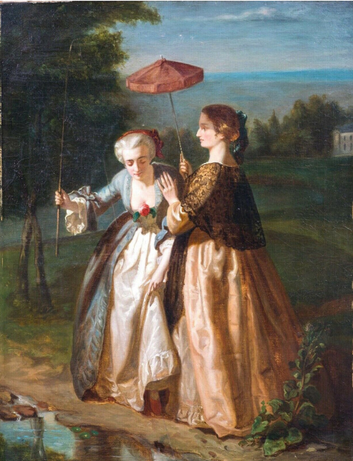 19th Century Belgian Ladies Fishing At Summer by VITAL DE GRONKEL (1820-1890)