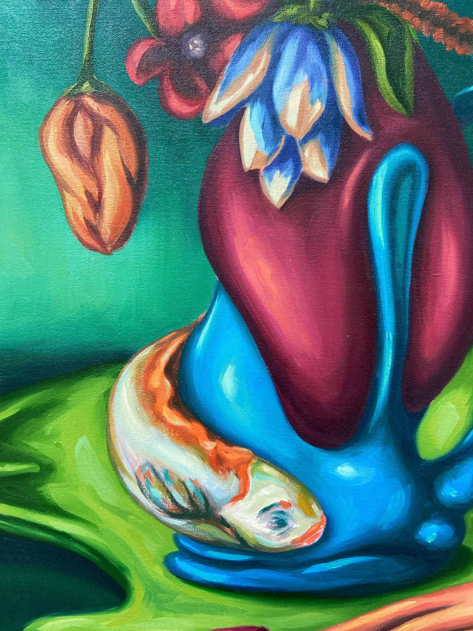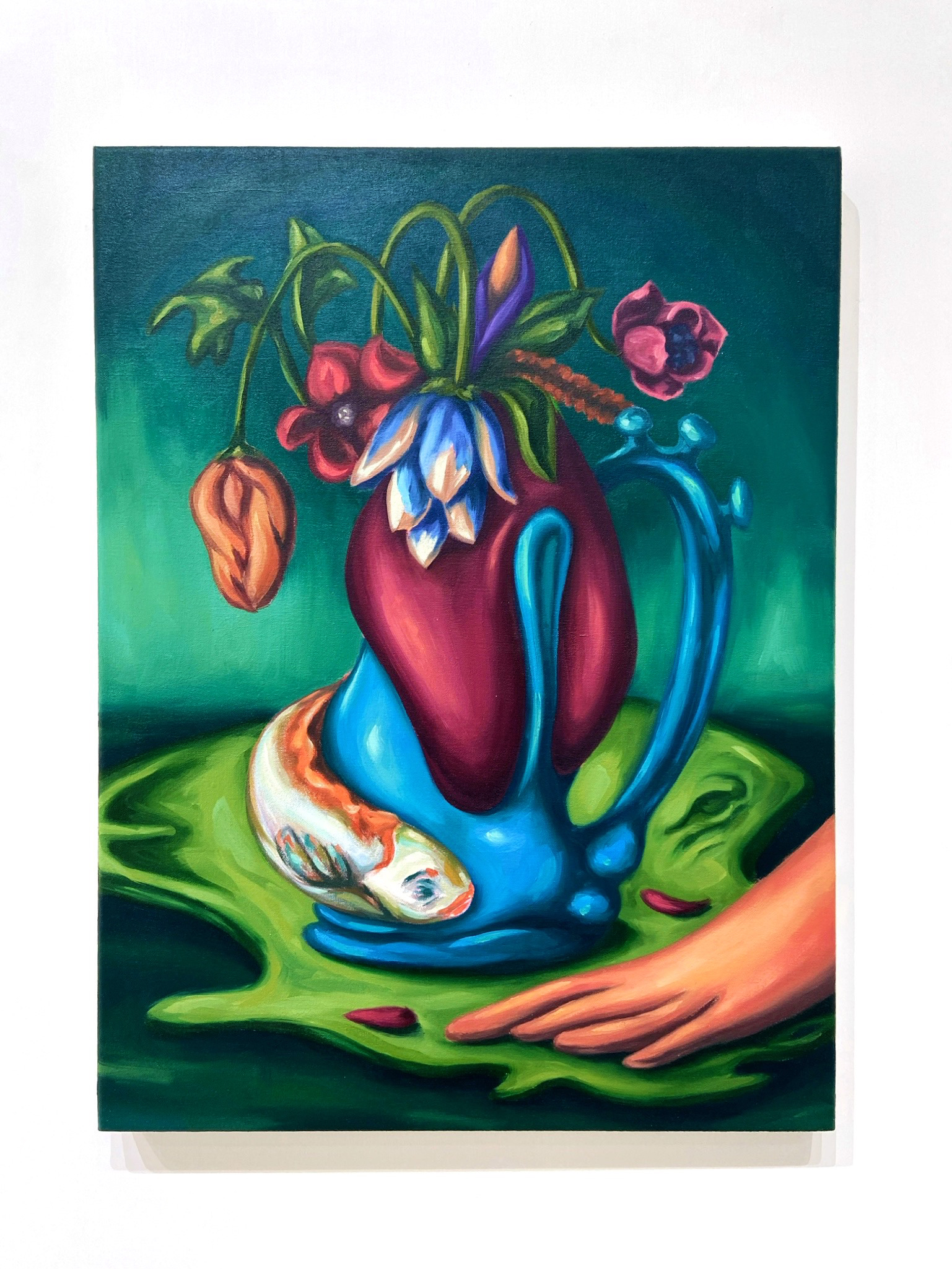 Kora Moya-Rojo 所创作的绘画和雕塑作品探讨了其流离失所的个人经历、流动性、女性的头巾和乡愁等记忆。而因受到 17 世纪女性静物艺术家如 Rachel Ruysch 和 Clara Peeters 的影响,Kora Moya-Rojo 将物的形象圆润地融合在一起,创造出既陌生又熟悉的梦幻般的场景。 她最近将她的实践扩展到食物,在艺术和美食之间建立桥梁,以反映她在西班牙和英国之间的跨文化经历。