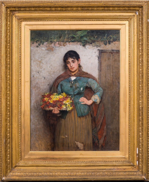 Large 19th Century Italian Flower Girl Portrait Carlton Alfred Smith [1853-1946]