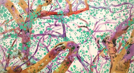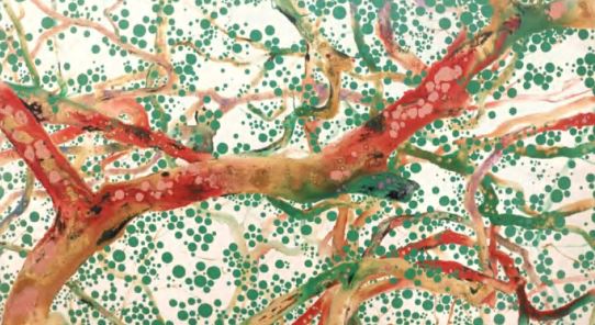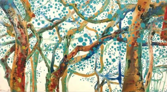 在 2019 年去寻找到了⼀颗千年古树,为灵感延⽣的《抽象的⽣命》系列和树系列作品。 凌云登:“让我⼤吃⼀惊!我站在⼤地上,抬头感受这历史性与⽣命的⼒量,脚下是悠久以前的⽕⼭⽯⼟,让我感受到周围的植物、 昆⾍、⻦⼉、⼟地、野草、声⾳、空⽓⼀切都是那么的伟⼤和震撼!”是我凌云登创作“树”题材的萌芽开始。