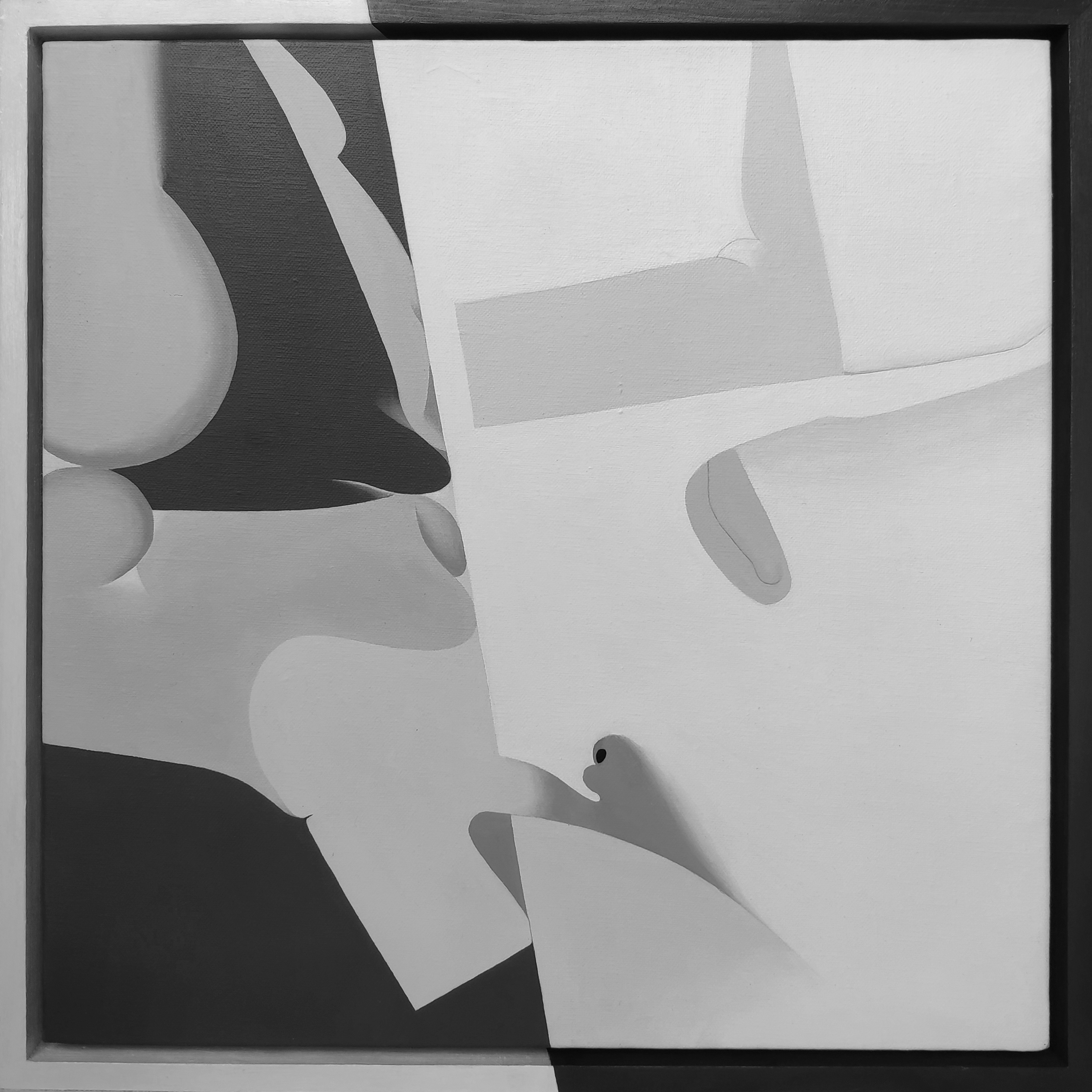“体向·关系”这一系列作品是“体向”系列作品的延续,整体风格一脉相承,作品所呈现的是我关于艺术诸多方面的思考,包括:为什么这样画;怎么画;探索的价值;坚持的意义。我的关注点是人的内在世界,以身体元素组构画面,以求挖掘人真实的内在景观。 减法,是我在绘画语言方面一直运用的手段,就像在拆一个房子,到最后只剩下几根不能再舍去的脊梁,然后以我简练的眼光重新去测量和架构,或许它们看起来只能够容纳躲雨和休憩的小鸟,但它可能是一个瓜棚,环绕它周围的大片的庄稼和天空才是我想要的内容。 这批作品运用了黑白灰调,当没有了丰富的其他色彩,画面的空间转换关系就显现出来了,一根线尖锐地把画面分割开来,两个陌路相逢的人开始在相邻的舞台表演,他们有时候互相介入对方的领地,有时候并不介入,彬彬有礼,或近或远,大多时候双方的关系是失衡的,因为碰到两个相同的人并用相同的方式互动是很小的几率。我喜欢在画面里铺开时间线,色调的变化、线的节奏的急促和缓慢以及形状的变化都暗合了时间。 没有了镜子,我们用眼睛看到的自己只能是躯干和肢体,确切说,是肉,它们每天被我们所支配,我们也体验着它的沉重感,它既不能逃离我们,也没法脱离骨干的控制,所以,我喜欢解放它们。画布就是我们观察自己身体的所及之处,肉体在这不足一平方米的视力范围内开始躲藏、扭曲变形、相互交叠、拼接断裂、翻转蔓延......观摩自己的游戏结束了。现在,画面上两个身体在互动,更为复杂,就如同人与人相处的现象,如果不在密切接触中阴阳交替,就会在时间里四季轮换,这就构成了人的社会性。 “体向·关系”这一阶段作品的创作基础和方向不太合拍,因为之前更多的以形式上的探索和实验为主,而这一阶段就追随着现实的脚步玩了一圈游戏,在一个不断呐喊创新的时代,我认为坚守的过程中必然有某种悄然生长的气息引领着我进入下一个密道。