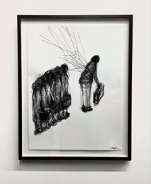 Charcoal and thread on paper,纸本上木炭和线