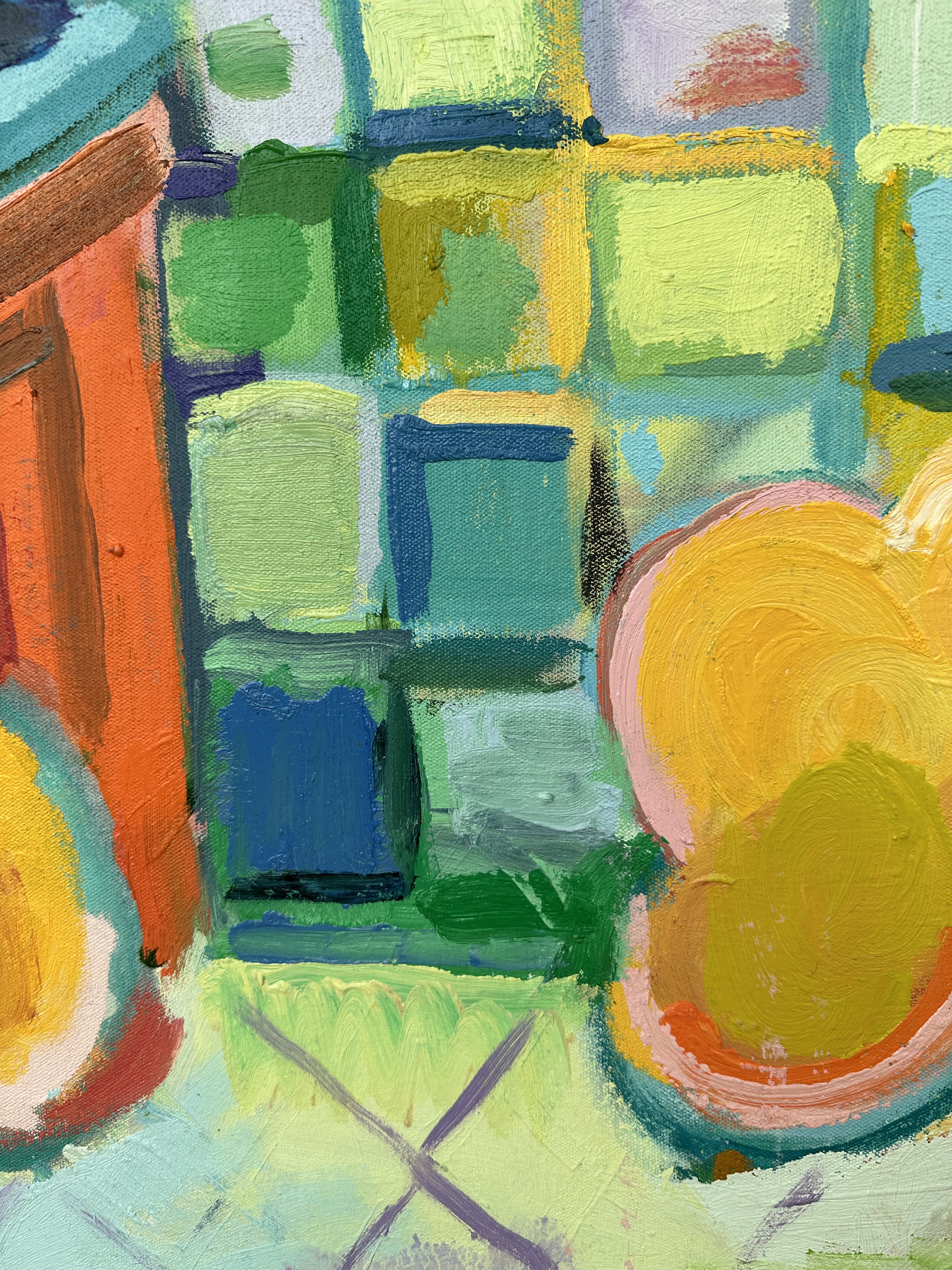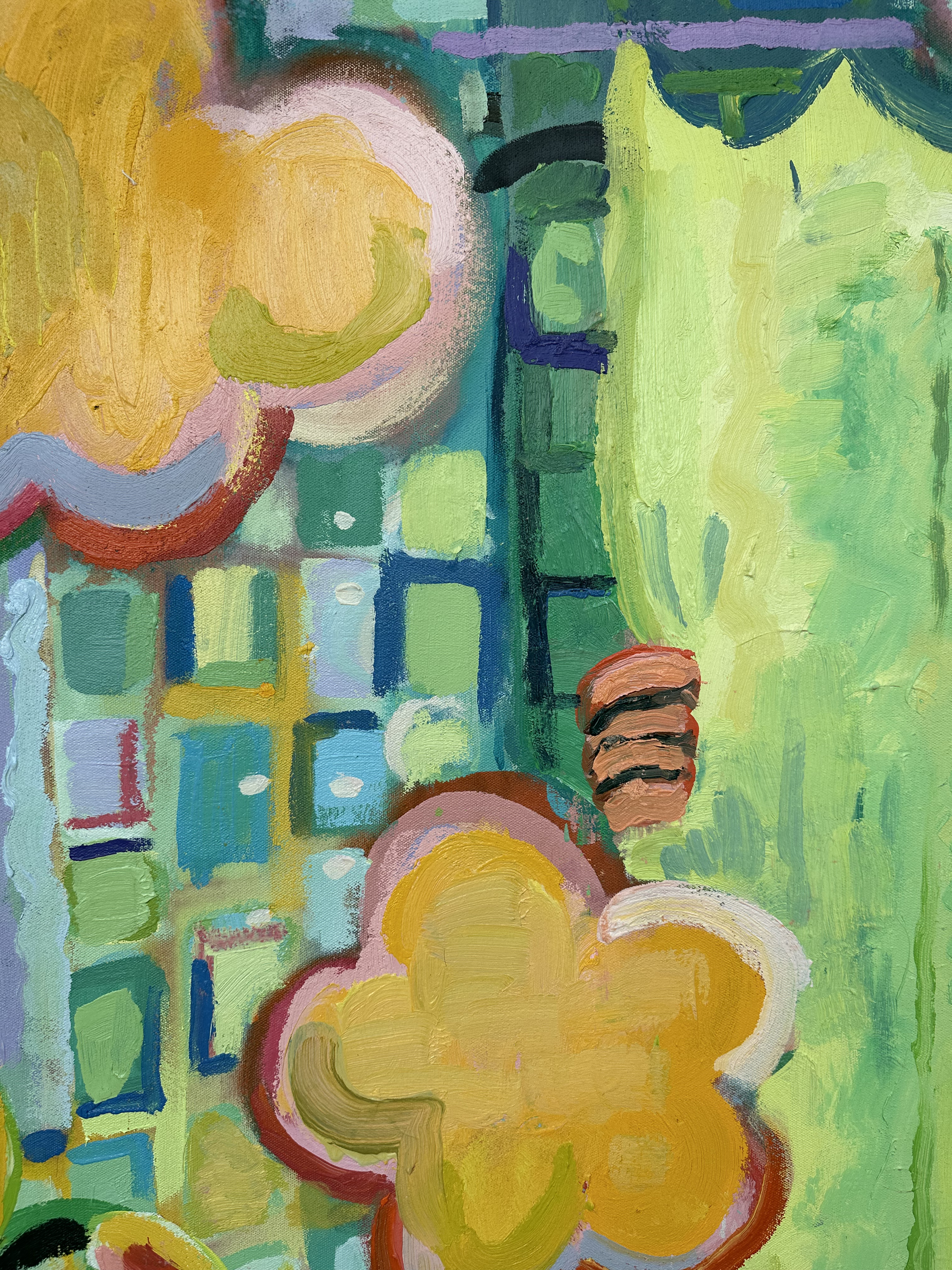 Lozano的创作经常结合实时性,题材大多源自于生活所思所见,而且他在创作的过程当中又会再进一步对世俗隐逸的生活进行深入的反思。他创造的画面都能够营造视觉上的冲击,观者彷佛被置入各种熟悉又陌生的室内外场景之中,除了感受到被场景围绕着的安全感之外,同时也会落入艺术家所幻想的荒诞和奇幻旅程里。 Lozano所描绘的那些繁盛场景示范了「混乱」和「宁静」如何共存,也暗示了在燥动的环境之中如何寻得平息。虽然户外生气焕发的植物与室内的家具设置所构成的和谐感会令观众感受到安全和舒适感,但这种平静也因各种混乱——包括燃起的对象、凌乱的空间和壮观的自然植物而被打破。“Running on Fumes”除了直接指向他作品中出现的火焰之外,烟雾这个符号也具备了半抽象的意味,隐喻了艺术家自省的过程。虽然烟雾的出现非常短暂,但其流淌于空气的时候却已经能够温暖一个家,它的流动感也暗喻着艺术家作画过程中无拘无束的幻想和概念。 Lozano并不拘泥于传统的油画技法,并且直接以堆叠的方式来建构整幅作品, 采取该媒介善于融合的优势来塑造色彩的微妙的变化, 描绘下光影间的细节。而且 , 他更会使用油和喷漆来在画布上打底 , 然后再于这些色层肌理上面绘画。此外, 大面积的画布也令他能够拥有更大的自由空间尝试不同构图和加入不同的元素。Lozano一开始较着重利用素描和影像来协助绘画景象, 但后来因其相信任何形式的计划都会阻碍创作过程,使作品变得沉闷,因此他舍弃了以原来的方式来进行创作,而选择利用一种更实时性的方式来建构作品。
