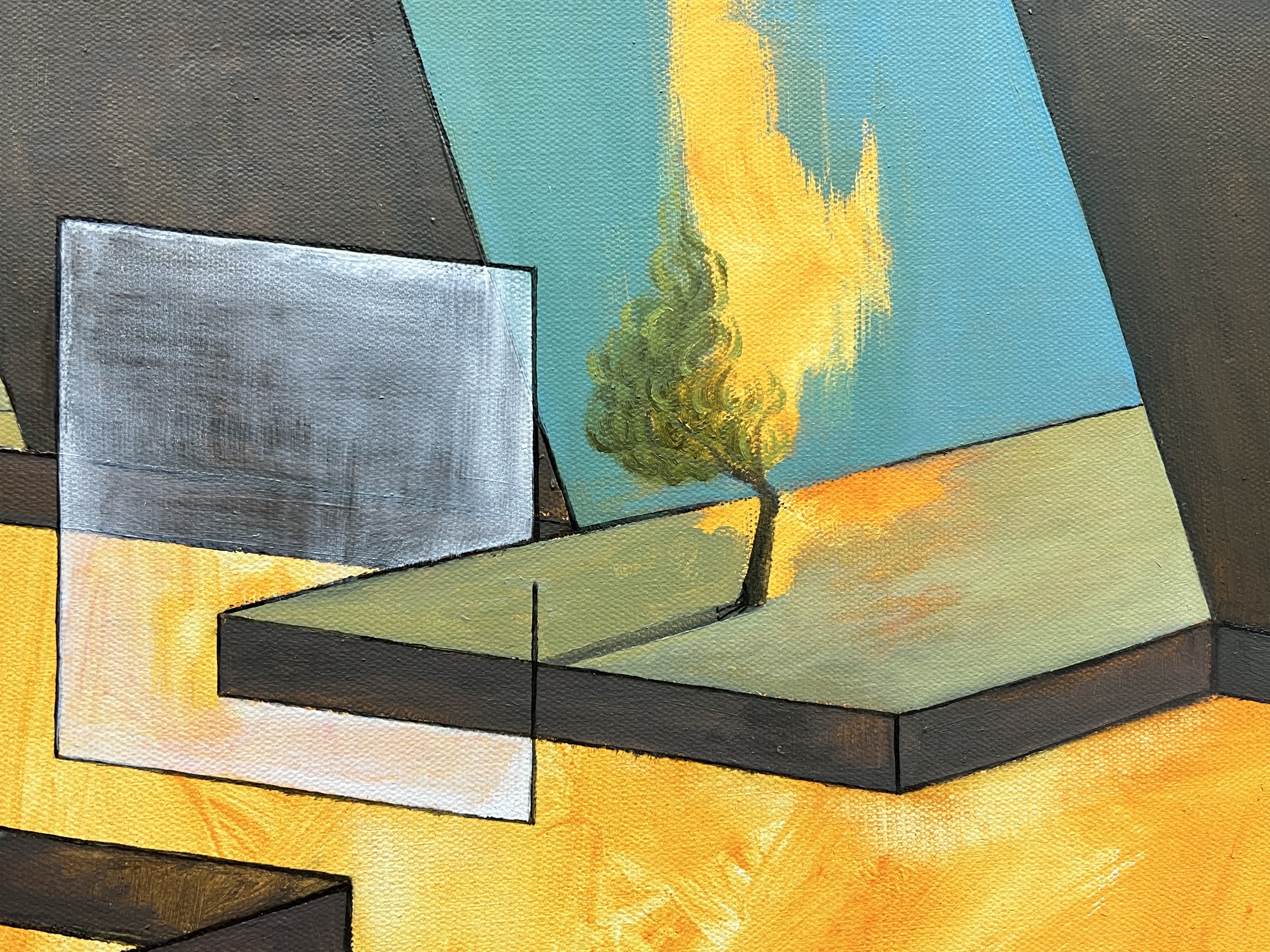 亚麻布面油画