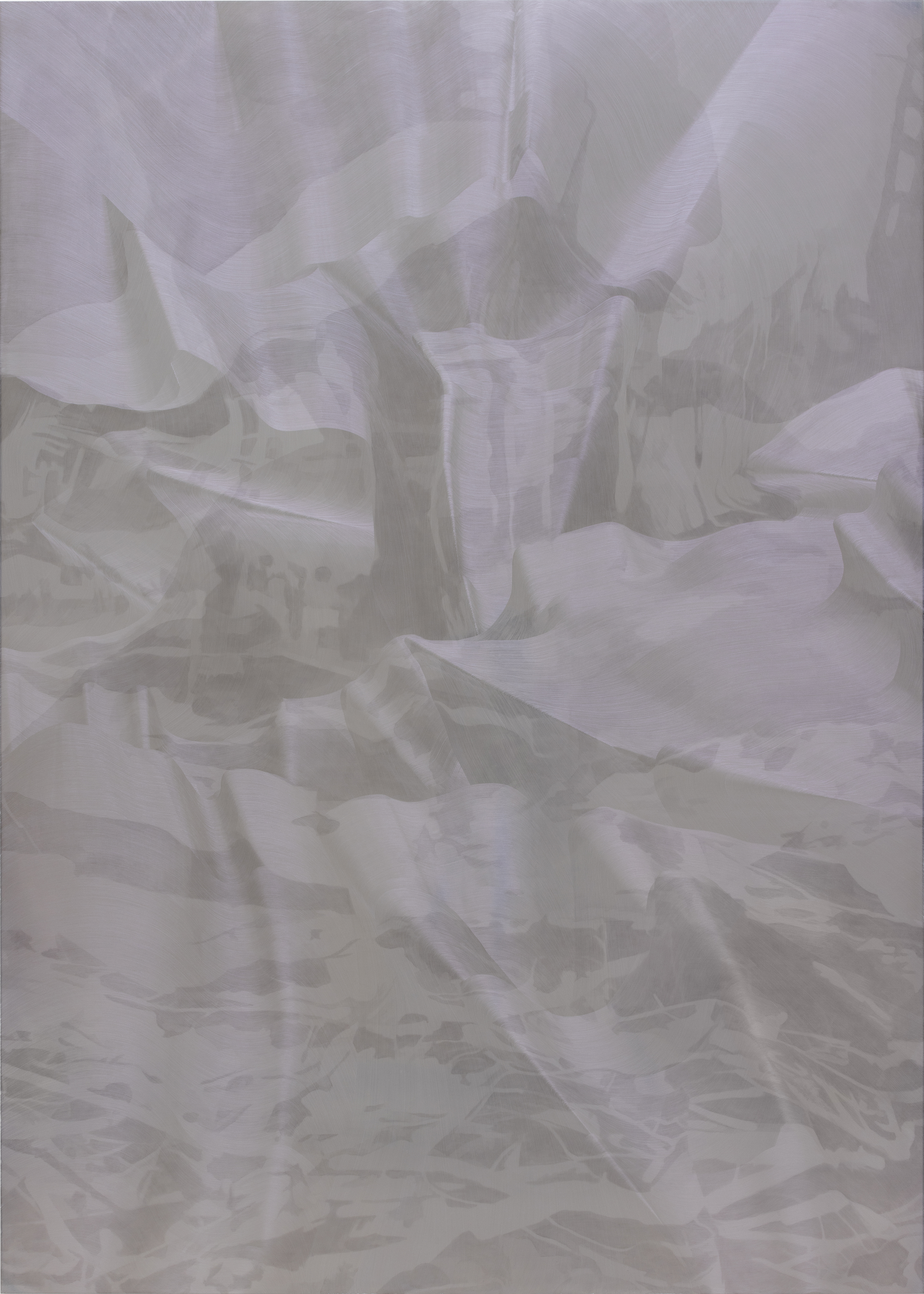 Perhaps the most striking feature of Pyykkinen’s pictures is their three-dimensional appearance. As hologram-like objects, they transcend the limits of two-dimensionality and extend deep into their own space of representation. Pyykkinen produces this effect through a meticulous layering of paint, where each layer contributes to the overall interplay of reflected and refracted light. In themselves, the paintings are of course inert, and can only come to life through their viewers’ active participation. Indeed, Pyykkinen’s works can be said to demand and feed on the movements of the people looking at them.