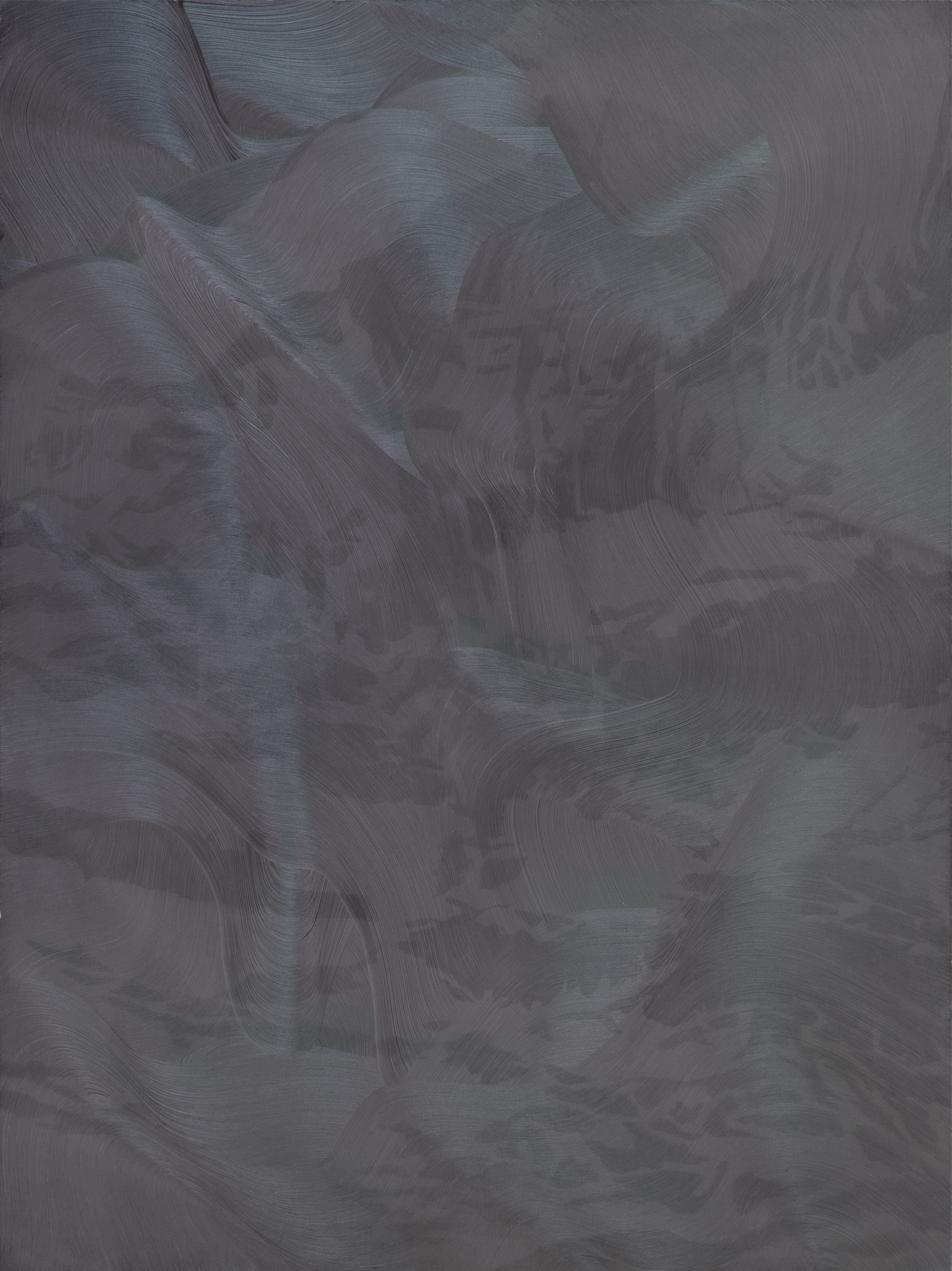 Perhaps the most striking feature of Pyykkinen’s pictures is their three-dimensional appearance. As hologram-like objects, they transcend the limits of two-dimensionality and extend deep into their own space of representation. Pyykkinen produces this effect through a meticulous layering of paint, where each layer contributes to the overall interplay of reflected and refracted light. In themselves, the paintings are of course inert, and can only come to life through their viewers’ active participation. Indeed, Pyykkinen’s works can be said to demand and feed on the movements of the people looking at them.