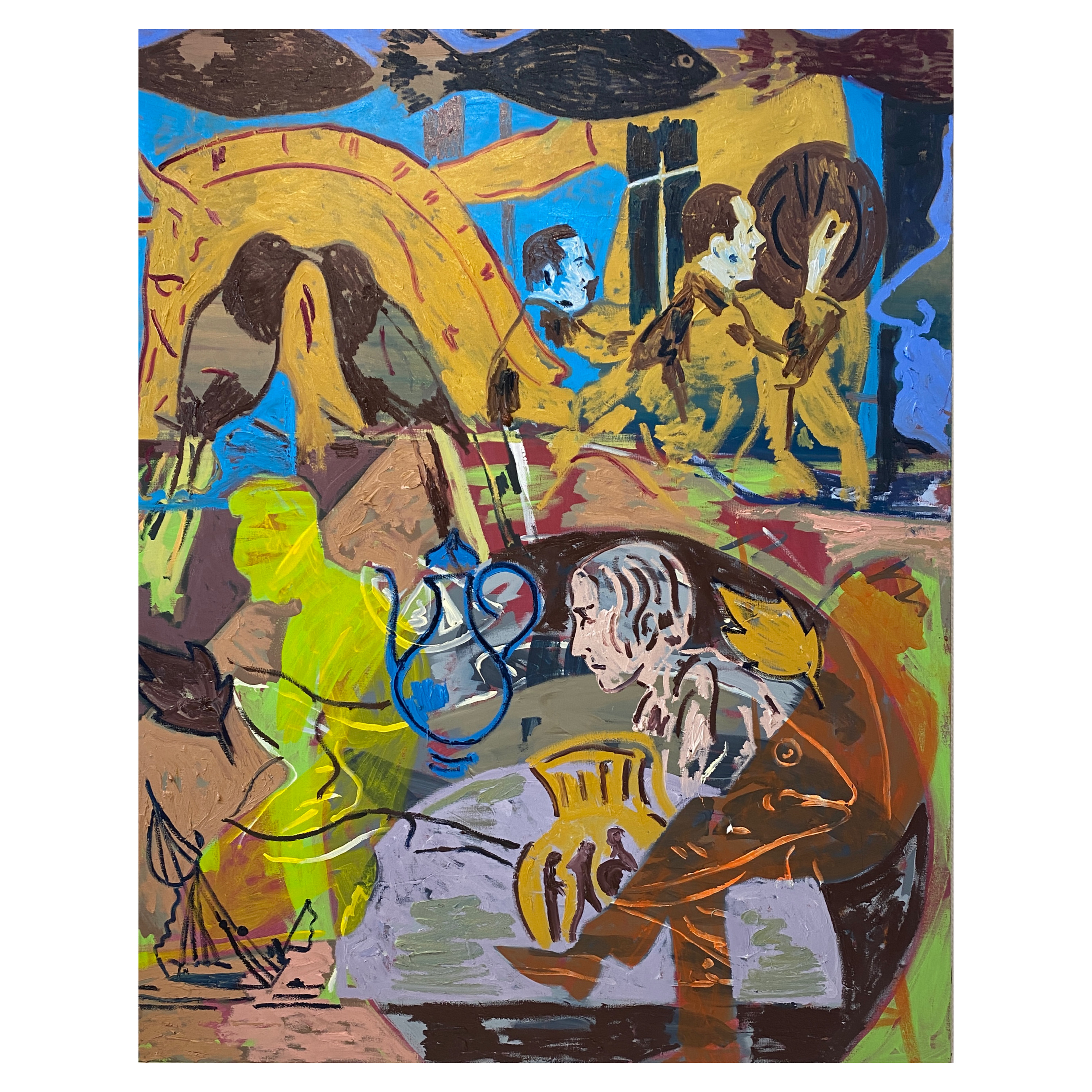 亚麻布面油画