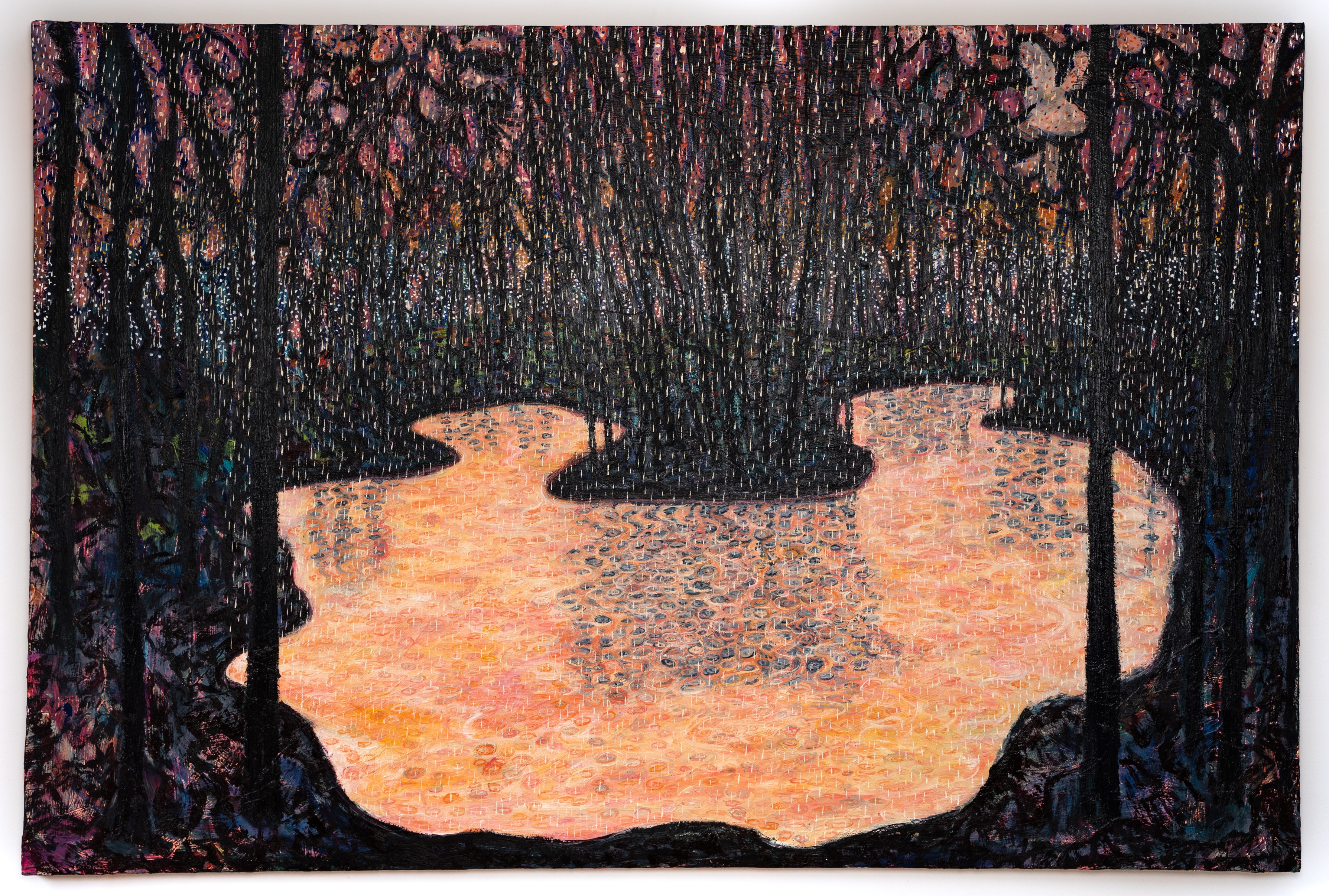 My paintings present a twilit, hallucinatory world haunted by the presence of the human figure. Light falls on flesh. Bodies coalesce with their surroundings.