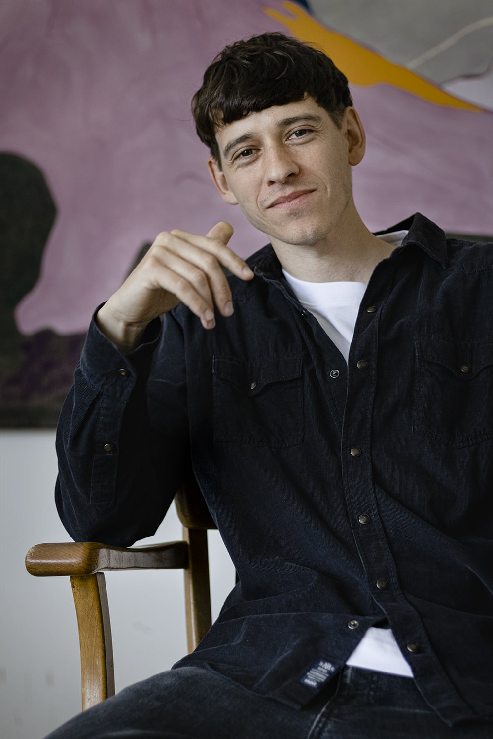In the process of creating an image, he looks for what presents itself to him as core elements of this nature. He finds this in landscapes and their colors, shapes and lines, which awaken longings in us while simultaneously containing the subtle presence of danger. Images emerge that originate from reality. However, not the one that is currently being experienced, but the reality that forms in himself over time, manifesting itself in his paintings. The forms found move between strong abstraction and familiar structures. Because of his understanding of the allegory between nature and social behavior, he subtly treats his own social interactions in his painting. Therefore, it is a highly emotional activity for him.