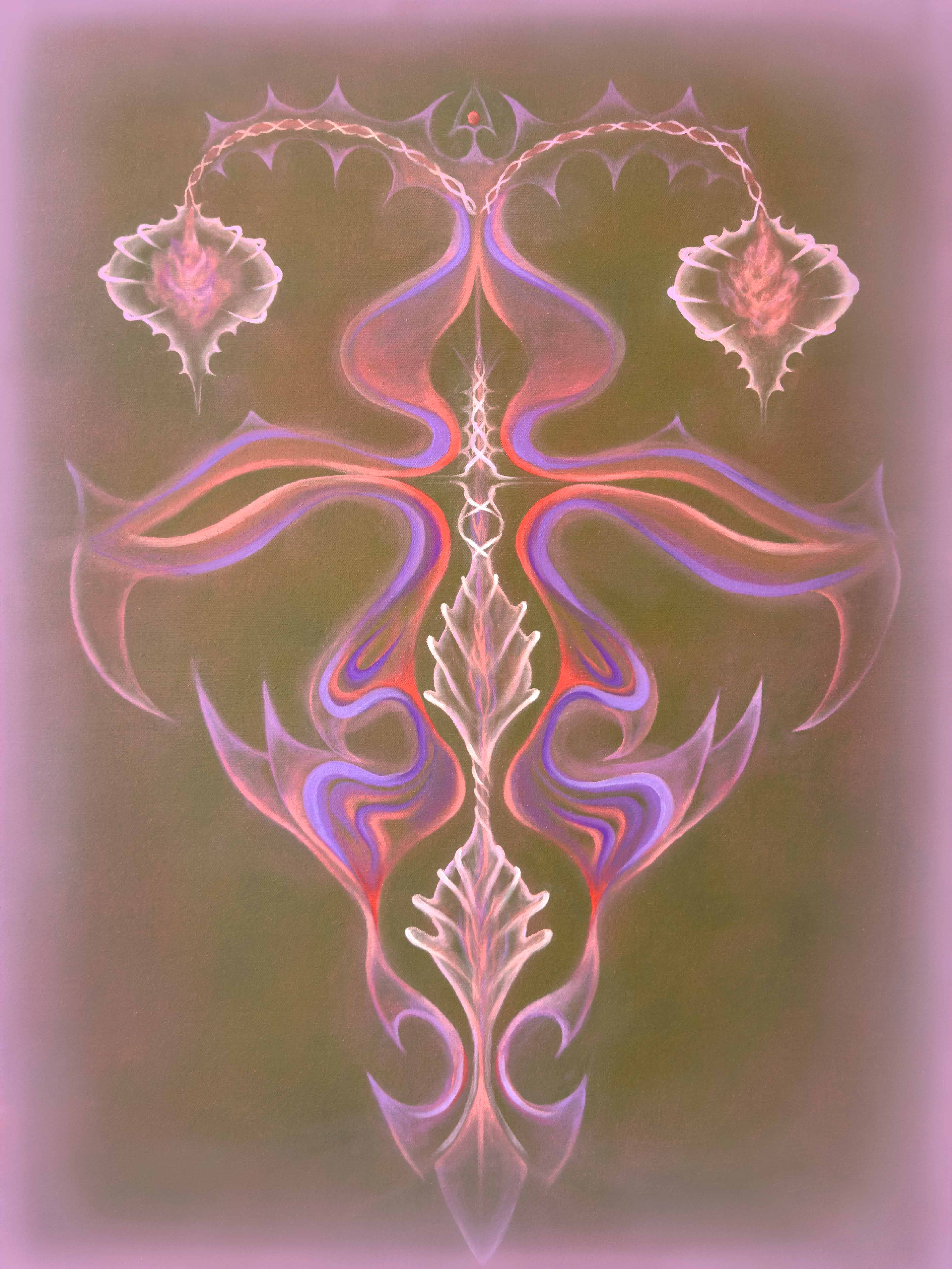 我的艺术作品是一块画布,在这里,思想超越了二维的起源,以独立的实体形式出现。为了赋予它独特的身份,我把它命名为 AVA。这个选择有几层意义: 1. 我选择了回文名称“AVA”来反映我画作中复杂形状和图案的对称性和平衡性。 2. “Ava”还带有“生存”的意思,象征着作品中蕴含的活力。 3. 这件艺术品源于我观察盆栽植物时的沉思。我从它的有机形状和生长模式中汲取灵感,并将它们融入到我的作品中。 4. “实体”内半透明的玻璃状元素象征着在其中脉动的动态和活力,赋予它生命。 5. 实体的有机形状散发出一种脆弱感,为了加强它,我引入了尖锐的图案作为保护的盔甲。这些元素不仅提供了鲜明的对比,而且还充当了隐喻的盾牌,强调了艺术品中脆弱性和力量之间的微妙平衡。