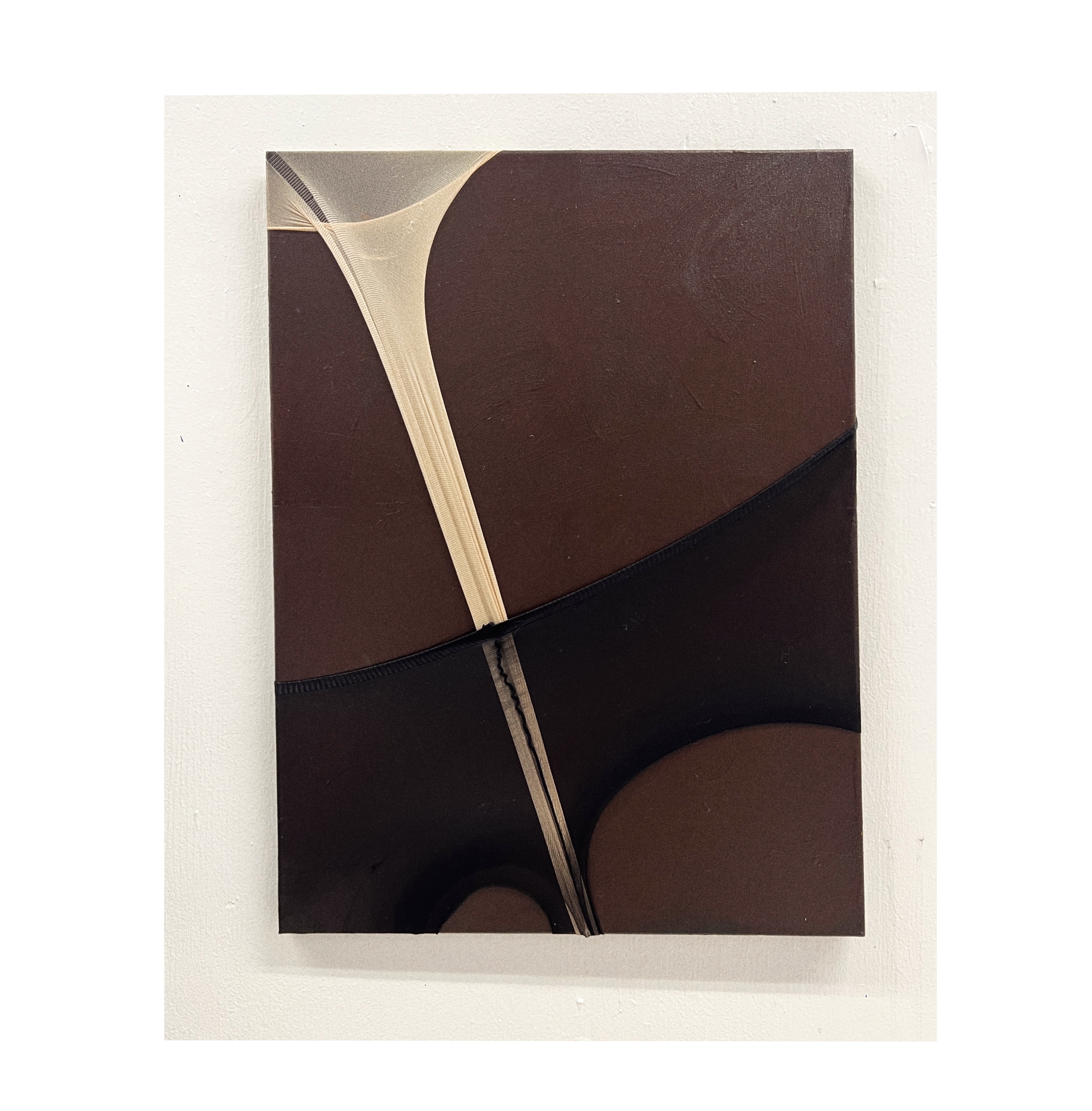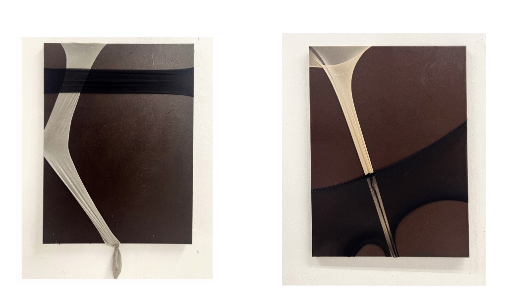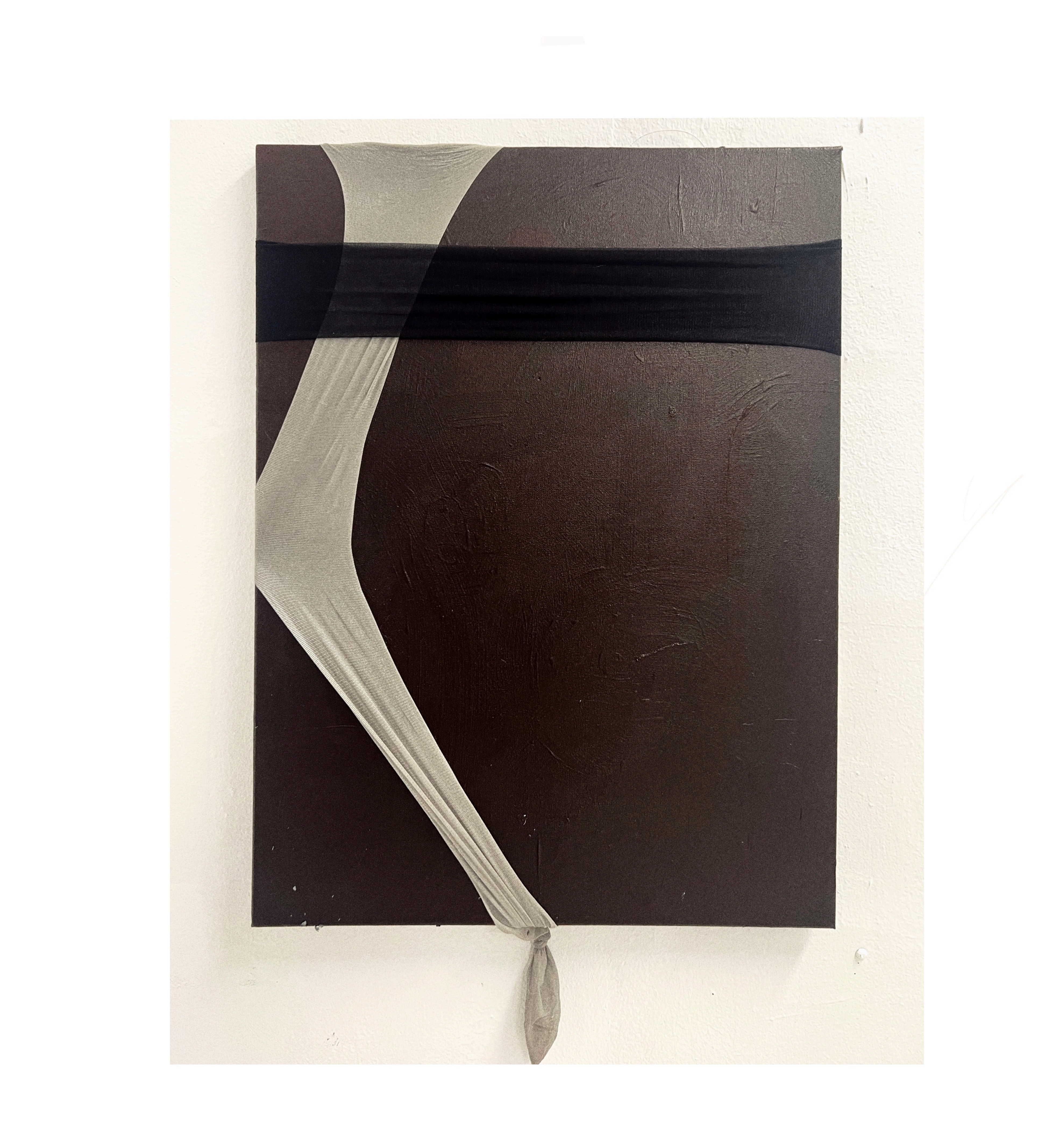 These works, created with acrylic paint and nylon stockings, delve into the philosophical intersection of femininity and the concept of a gift. Nylon stockings, a material intimately associated with the body, embody a duality of softness and fragility. They carry the essence of feminine bodily experience, symbolizing a delicate balance between protection and exposure. The tension, stretching, and distortion on the canvas seem to reveal an internal conflict—a struggle between identity, societal expectations, and individual agency.