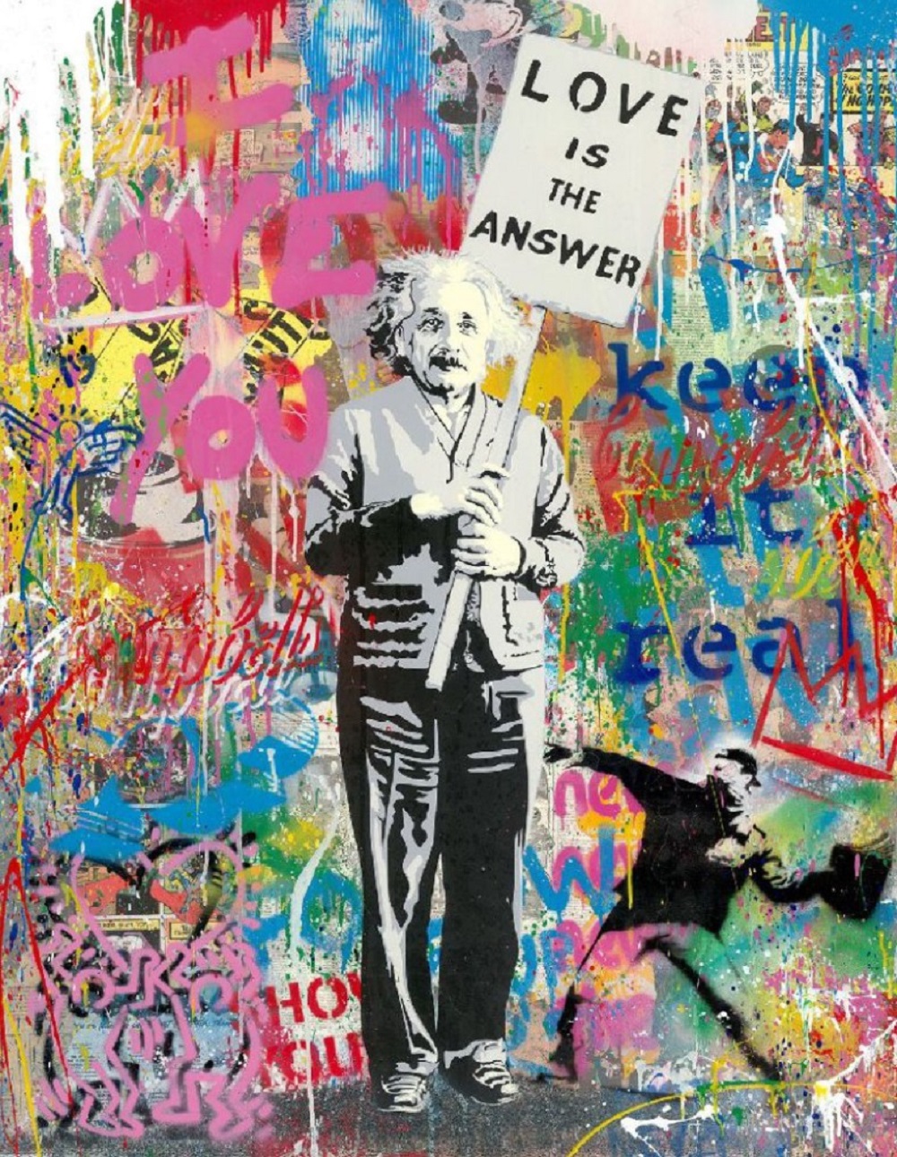 Einstein by Mr. Brainwash is a tribute to Albert Einstein – the founder of general relativity and an icon from the world of physics. Bright and strong colours are the basis for each of his works.