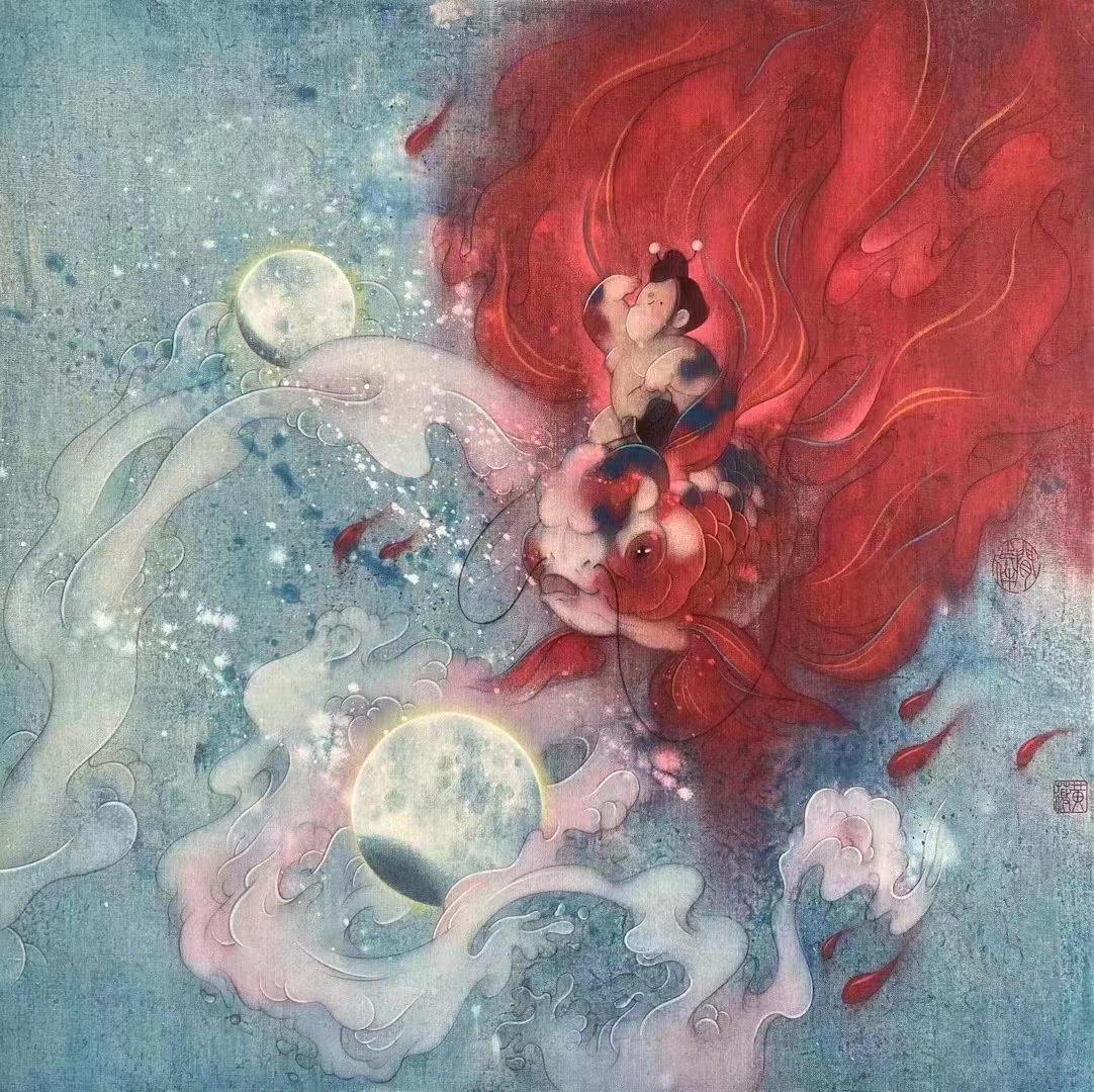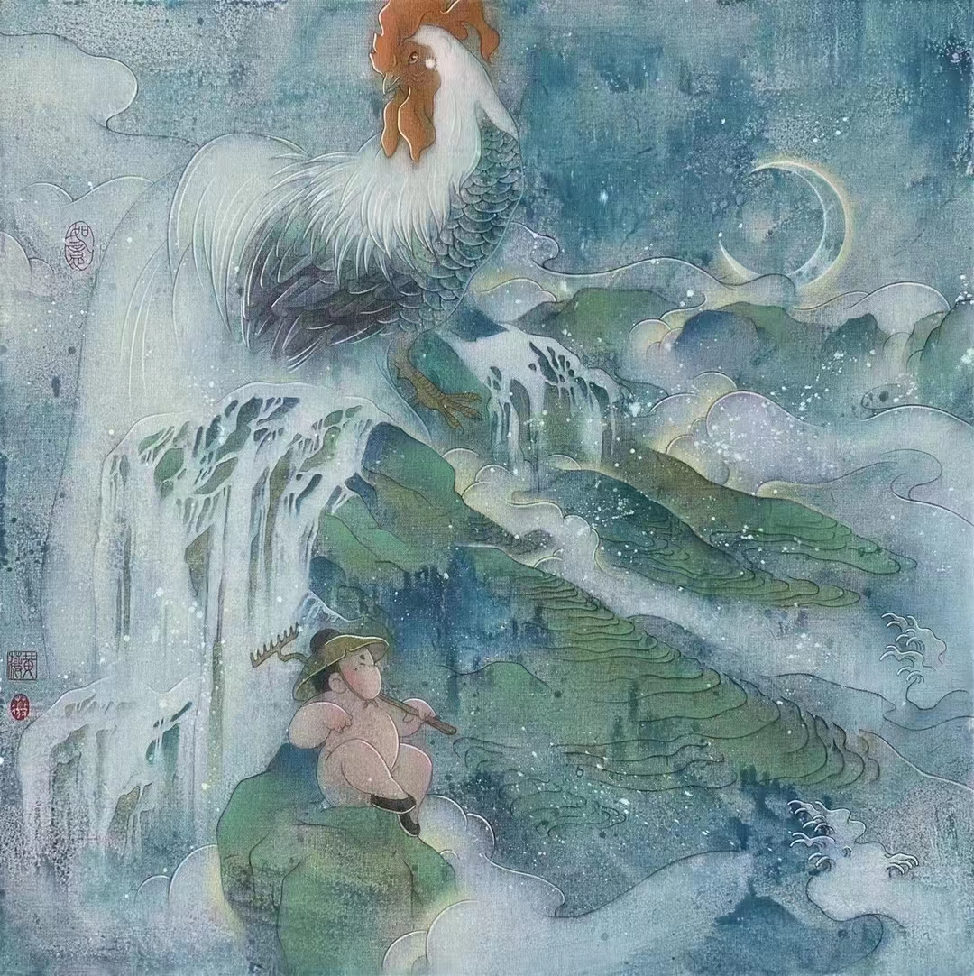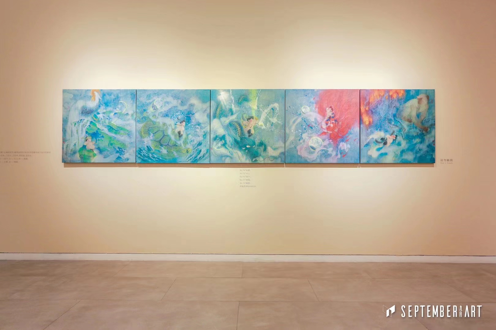 No.74「从革」 No.75「炎上」 No.76「潤下」 No.77「稼穡」 No.78「曲直」 布面丙烯80X80CM 這套「山海經系列」最早出现在《尚书》洪范篇中关于五行的阐述: 一曰水,二曰火,三曰木,四曰金,五曰土。水——润下,火——炎上,木——曲直,金——从革,土——稼稿。