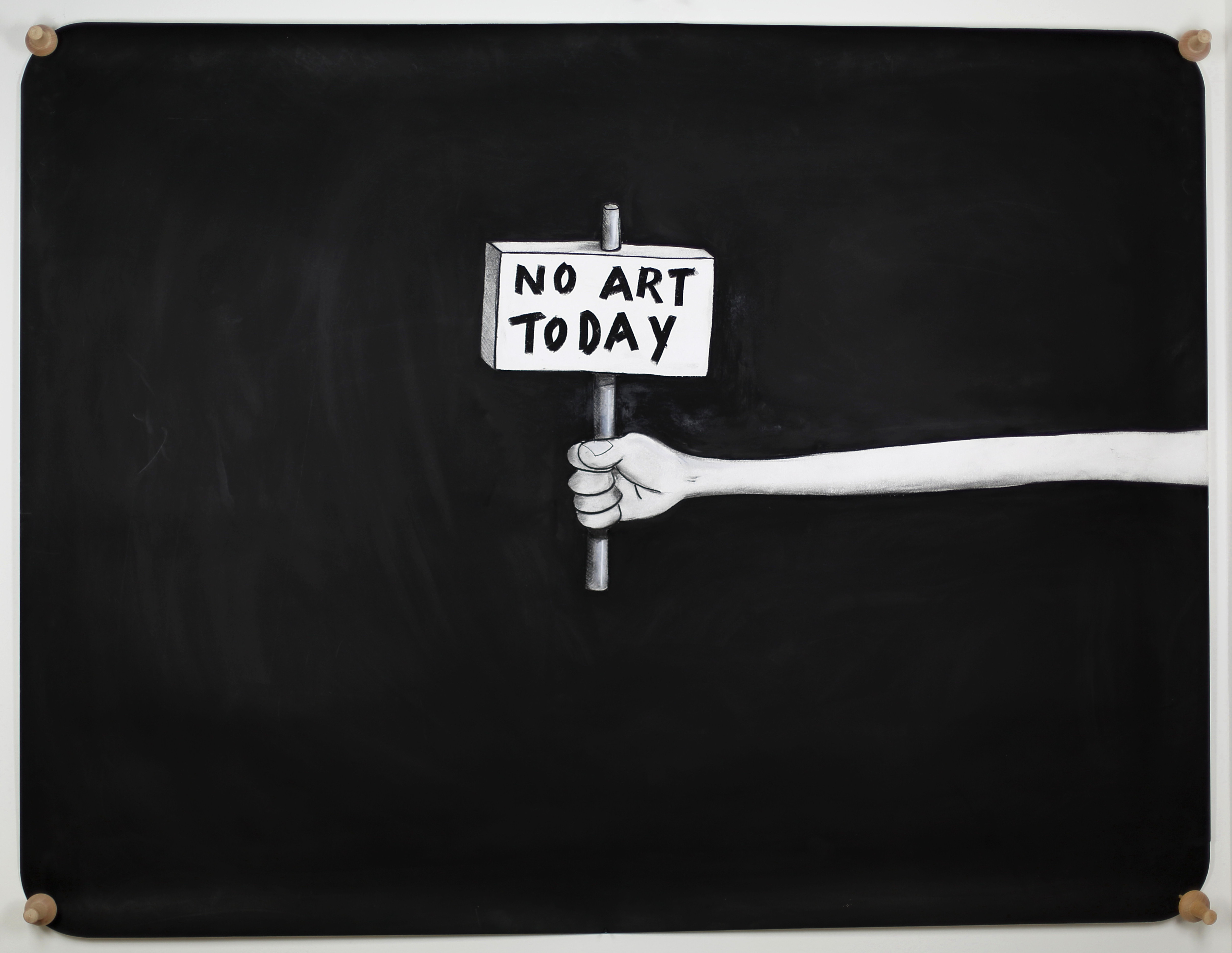"No Art Today" is a great example of the ironic humor in the work of Javier Calleja. As an artist himself he looks at the world and especially at the art world with a joy- and playful humor.
