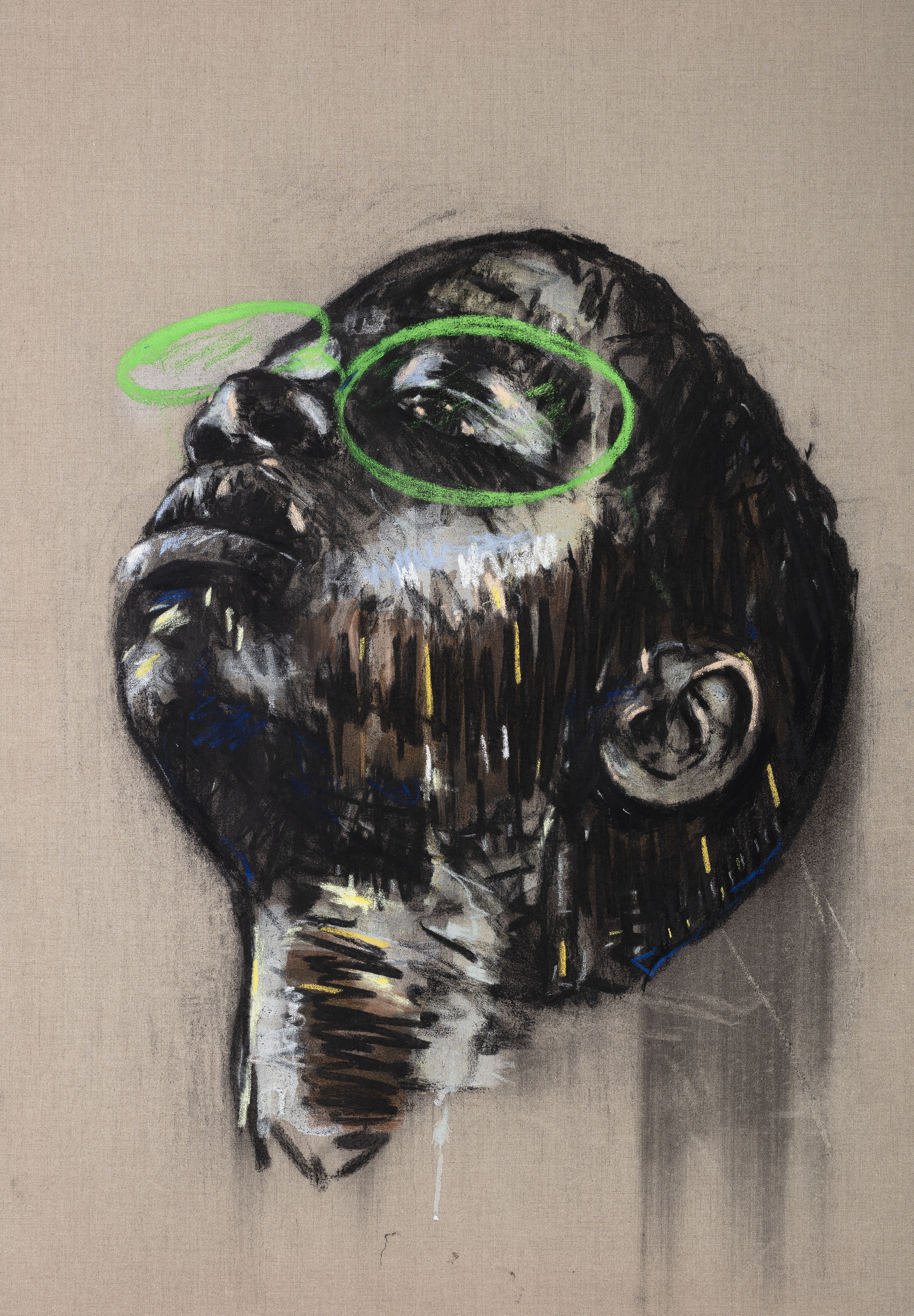 Henry James once wrote of Paris as a jewel, a city where what “seemed all surface one moment seemed all depth the next.” The same might be said for the ecstatic portraits of Nelson Makamo: rather than capture a single aspect of his subjects, he reveals their many facets, changed by the cast of light or by who is looking. In drawings, watercolors, monotypes, and oil paintings, the Johannesburg-based artist portrays children—his young cousin Mapule Maoto as well as strangers and acquaintances, often from his native province of Limpopo, South Africa—in all the complexity with which he encounters them. Radiant marks in explosive, varied colors cohere into the gestalt of Black faces. While Makamo is drawn to the simplicity and hopefulness that imbues the child’s perspective, we also see in his faces the glimmers of hesitation, generosity, skepticism, grace, vulnerability, distraction, patience, and eagerness. That is, we see the abundance of what is always just behind the eyes, and in that abundance, a universality. In several of the works, wonderfully bright, oversized eyeglasses emphasize the act of seeing and the impact of being seen. “I believe that art can make you look at someone differently,” he told writer Enuma Okoro, “and I’ve always wondered, if we ignore other people, and fail to see them, can we still truly see ourselves?” Taking a cue from the openness of his subjects, Makamo works intuitively, without blueprint, foregrounding expression and experimentation in his practice. By using mixed tools and media from drawing to painting, the South African artist creates portraits on canvas and paper that draw inspiration from the childhood experiences. They challenge the typical portrayal of African children often seen in the West as sad and impoverished by depicting the juvenile characters as bold, strong, humorous and defiant. Makamo has exhibited in several solo and group exhibitions in the North America, Africa and Europe.