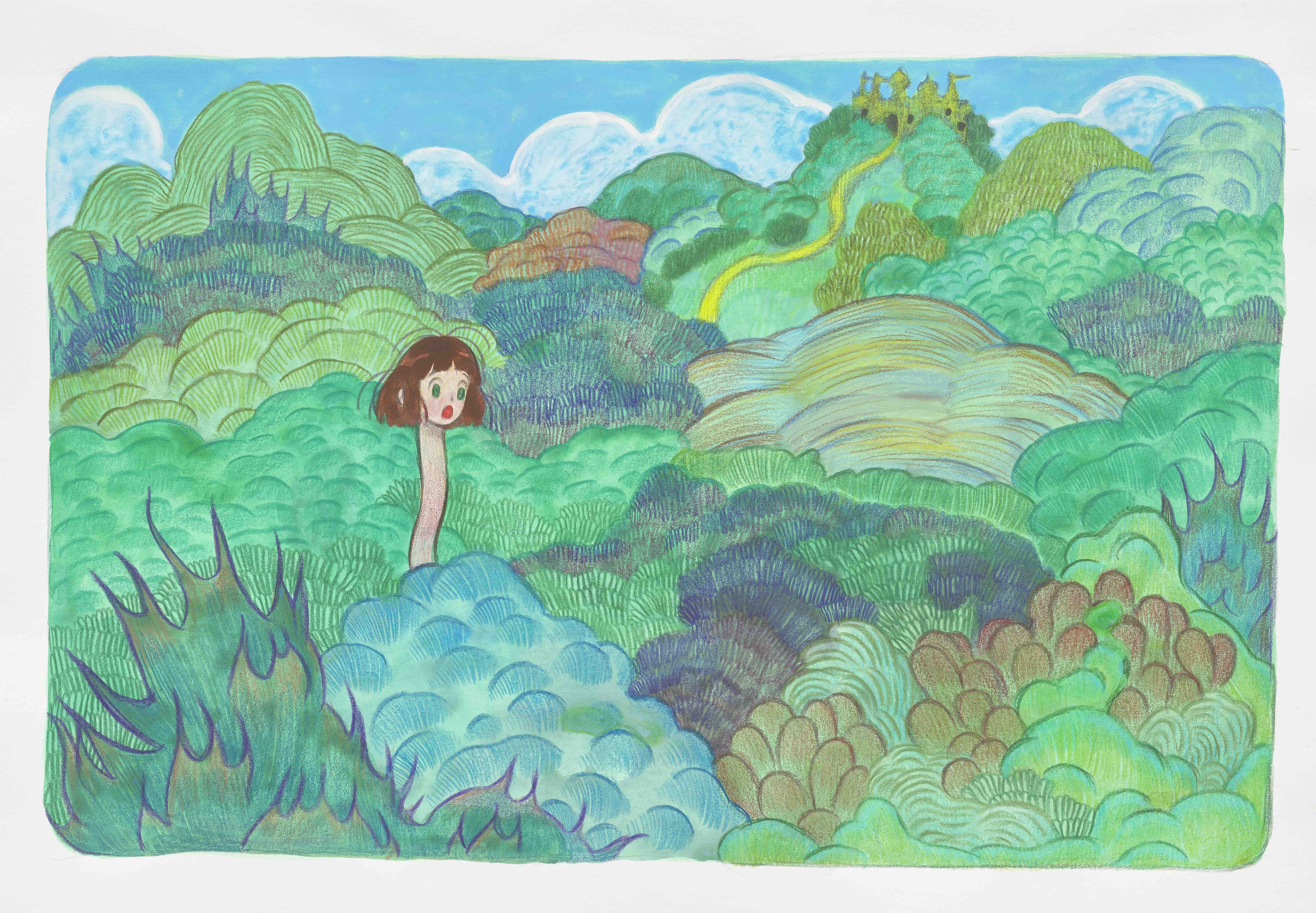 colored pencil and watercolor on paper, 39 × 27 cm (frame: 49.5 × 37 cm)