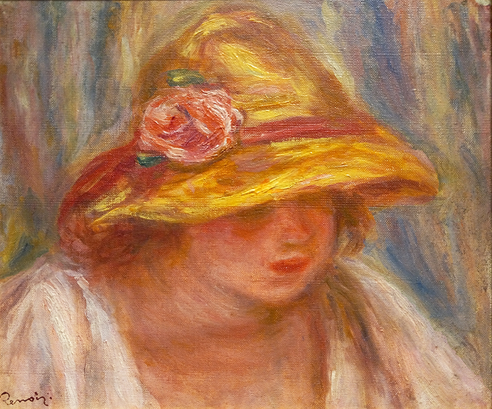 Andrée Heuschling was the last model that Renoir painted. She arrived at Renoir’s home in Cagnes-sur-mer in 1917, reinvigorating the aging artist, who was suffering from crippling arthritis and mourning the loss of his wife. Renoir was captivated by the young woman’s vivaciousness and beauty. He painted more than 100 pictures of the strawberry-blond Andrée before his death.