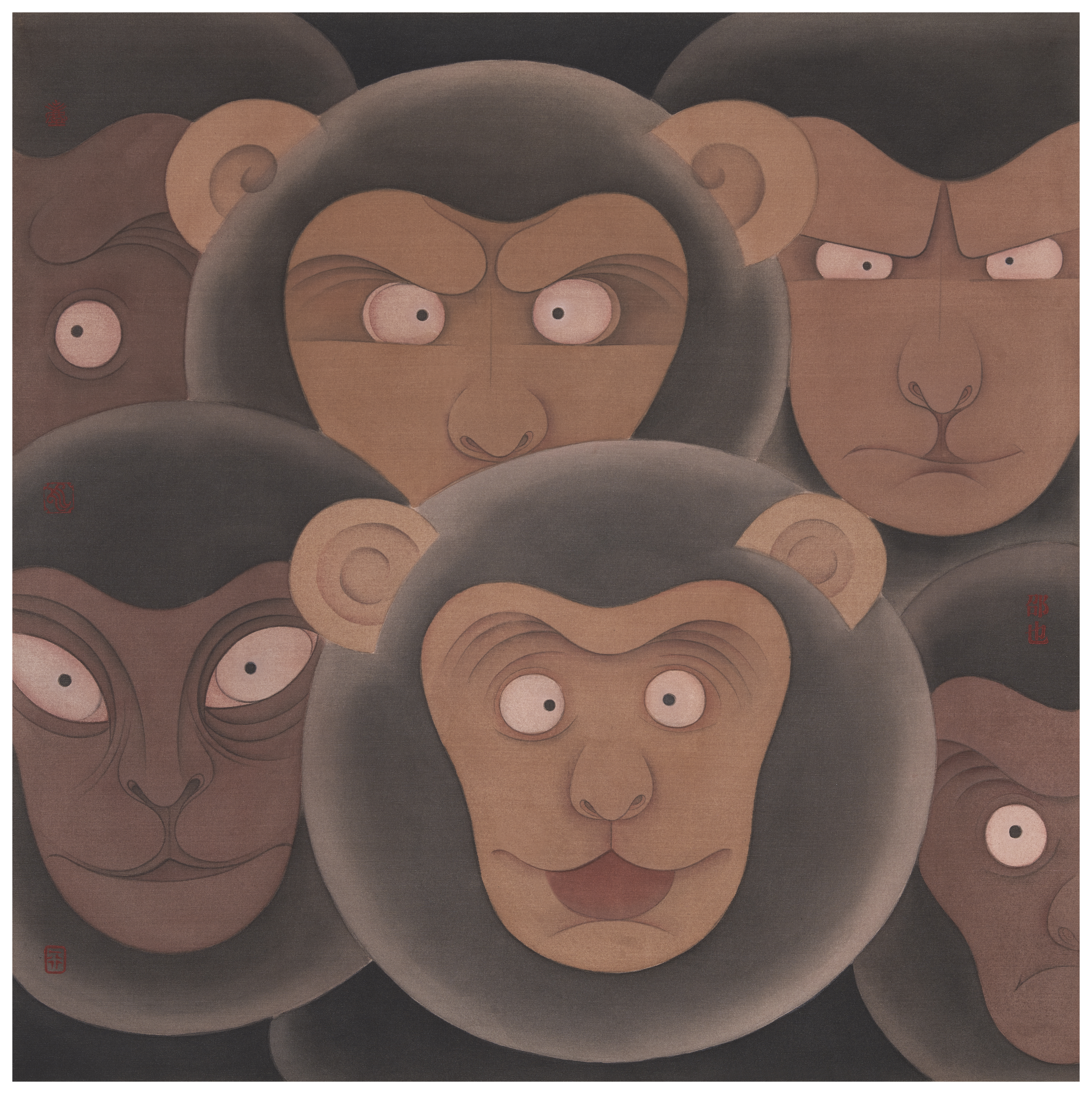 文丨邵也 画面中,一群猴子整齐地列队站立,它们被赋予了人的神态,或嬉皮可爱,或紧张不安,或欢欣鼓舞,或沮丧垂头,犹如一幅现代社会的众生相。画面运用矩阵式的排列方式,将这些拟人化的猴子置于同一平面,形成一种“压倒性”的视觉张力,统一的队列形式与各异的神态表情,构成了集体与个体、规范与自由、外在秩序与内在情感的强烈对比。 这不仅仅是一幅关于描猴子的画作,更是一面映照当代人精神困境的棱镜。在短视频全面渗透日常的今天,个体的表达与被看见的权利被无限放大,然而,这种看似解放的个体主义背后,隐藏着一个深刻的悖论:当身份成为可建构、可选择的产物时,对身份的焦虑也随之而生。我们被任何时候都渴望被看见、被认可、被尊重,渴望在他人眼中获得一个确定的形象。 这种对“区别对待”的恐惧和对身份的焦虑,恰如画面中那些神态各异的猴子,它们虽站列成队,却各自沉浸在自己的情绪世界里,既渴望融入集体,又害怕失去自我。“自我”在这场繁荣的大浪潮中,变成了一只需要不断充入他人认可才能保持饱满的气球。我们不断从外界获取标签,却在这个过程中,不知不觉地沦为资本主义流水线上一个个精致的商品。