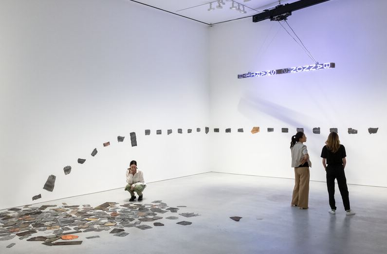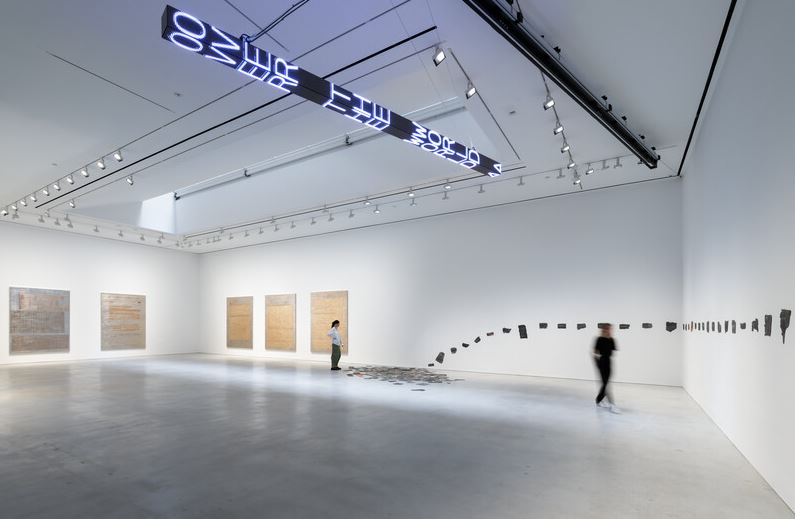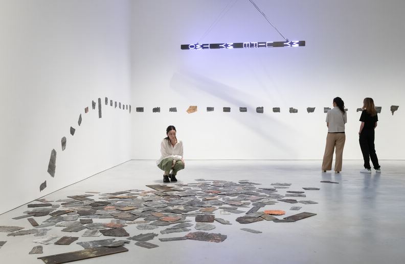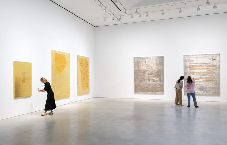 自 1970 年代以来,著名的美国艺术家Jenny Holzer一直使用语言作为她的主要媒介,动员诗歌、政治和个人文本来反思我们对权力、暴力、欢乐、理想主义、胡说八道、绝望、乐趣和腐败的体验。今年 9 月,豪瑟沃斯纽约将在这位艺术家期待已久的纽约个展中展示霍尔泽的最新作品——包括绘画、“诅咒石板”和包含总统推文的巨大动力展示。 霍尔泽的豪瑟沃斯纽约处女作让这位艺术家直接融入当下,从新的和古老的文化政治材料中汲取灵感,照亮当代生活。演示文稿的核心部分是“WTF”(2022 年),它是一个摆动的电子标牌,上面有唐纳德特朗普在担任总统期间发布的推文和 QAnon 阴谋的领导人 Q 的帖子。最新的一系列动力学实验中,“WTF”以不可预测的节奏沿着轨道滑动,这与在线消息出现的不稳定节奏相呼应。闪烁和滚动的文字照亮了近 300 块排列在画廊墙壁上的“诅咒牌”,散落在地板上。这件新作品的灵感来自古罗马人用来复仇的铭文铅板。霍尔泽的平板电脑是通过在金属碎片上印上推文制成的,然后通过揉皱、折叠、刺穿和化学浴使它们痛苦和老化。就像 Holzer 先前唤起公共牌匾的破坏或熔化迭代一样,损坏的平板电脑暗示着垃圾、残骸和破坏。类似攻城锤的电子设备和准考古平板电脑一起构成了过去和现在的时间胶囊,记录了描绘当今政治和媒体格局的夸张、愤怒的言辞——分裂的语言匹配或超过了霍尔泽的“炎症论文”中使用的语言’(1979 – 1982 年)。 展览还展出了一系列新的大型亚麻绘画作品,标志着霍尔泽绘画实践的最新阶段,它分析并可视化了从乔治·W·布什时代到现在美国政治中持续且相互关联的动荡。这些作品的表面是建立在对经过大量编辑的政府文件的放大页面的追踪之上的,其中包括特别顾问罗伯特·穆勒关于俄罗斯干涉 2016 年美国总统大选的报告以及与爱国者法案有关的联邦调查局记录。霍尔泽用五颜六色的油画块精心覆盖了删减和空白处,然后添加了层层夜光金、铂金和其他金属叶子。这些画作的诱人之美掩盖了它们表面下的困难内容,艺术家